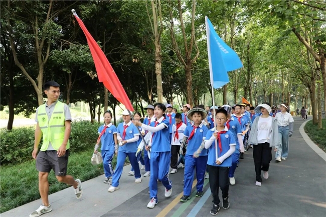 同学们在学校副校长杨东宇、教务处、德育处、劳动教研组老师及班主任的带领下,整齐列队,徒步前往躬耕园。