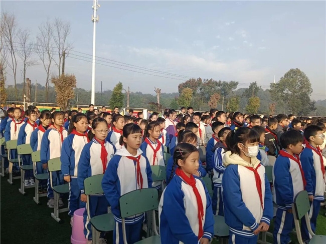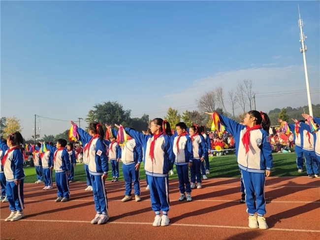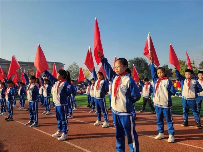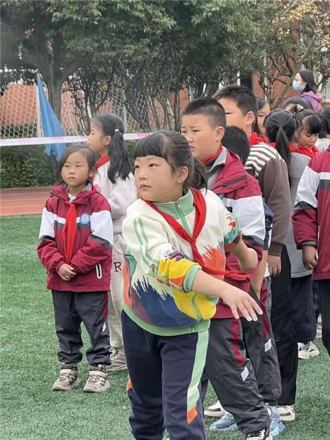 雄壮的《义勇军进行曲》划破晴空,小小护旗手们昂首挺胸,迈着整齐的步伐护送五星红旗入场。全体师生肃立注目,看着国旗冉冉升起,爱国情怀在心中悄然激荡。学生志愿者提前协助整理国旗、引导列队,确保仪式庄重有序。