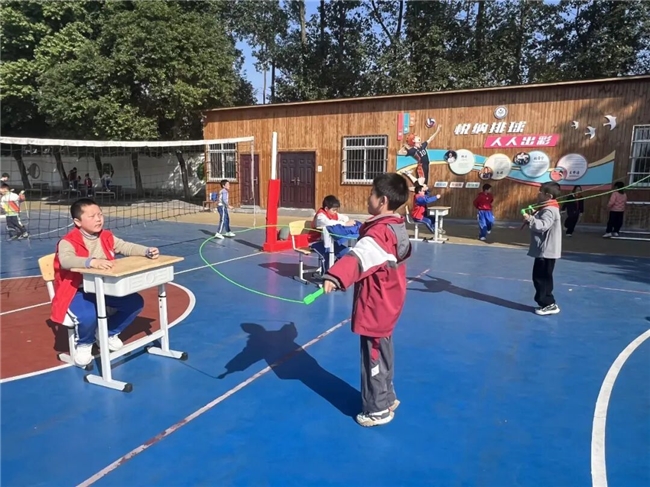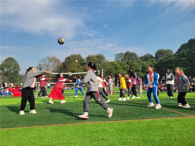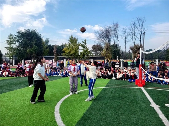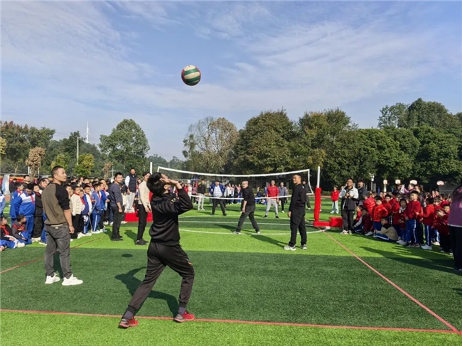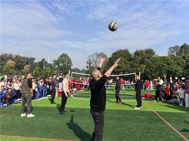 家长代表们化身运动健将,在排球场上展开激烈角逐。发球、扣杀、拦网,每一个动作都尽显风采,赛场边孩子们的加油声此起彼伏,亲子间的默契与温情在运动中传递。志愿者为家长们递上饮用水,提醒观赛同学保持安全距离。