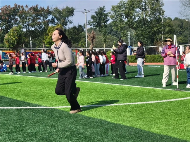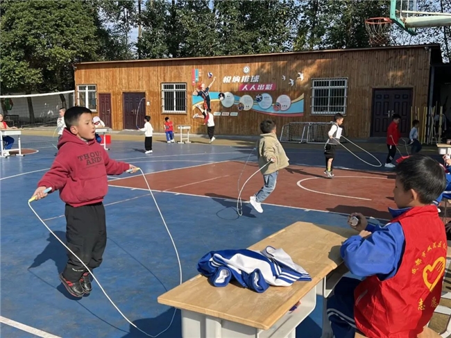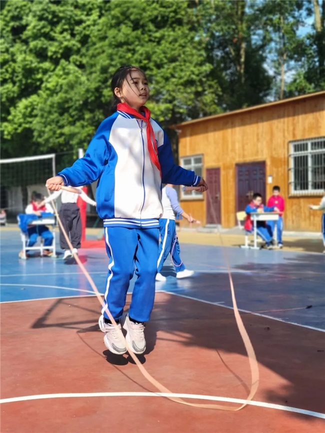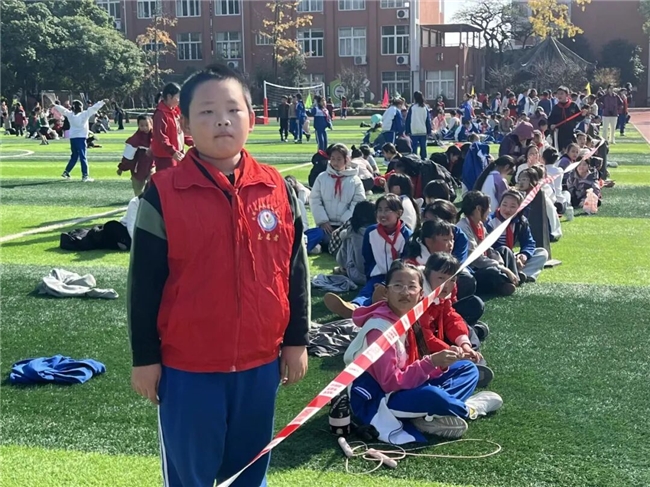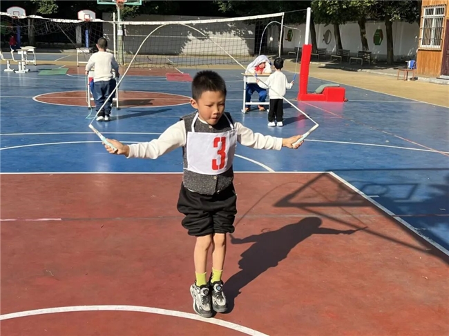 跳绳赛场绳影翻飞,小选手们双脚轻盈跳跃,绳子在空中划出优美的弧线。有的同学节奏平稳、耐力十足,有的则速度飞快、爆发力惊人,一张张红扑扑的小脸上满是专注与执着。志愿者协助计数、整理器材,为选手们提供贴心服务。