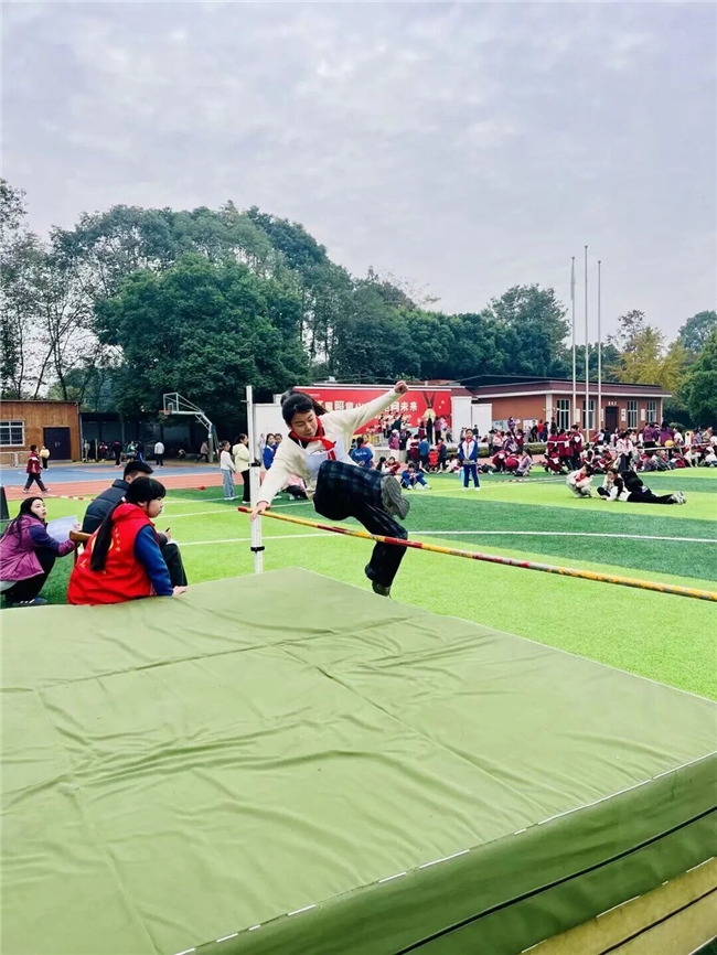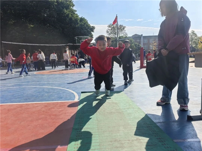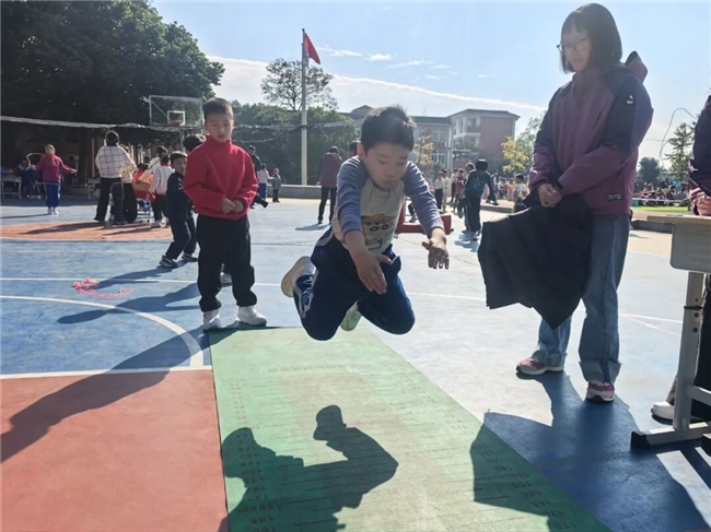 立定跳远场地前,选手们认真做好热身,屈膝、摆臂、发力、腾空,每一个动作都凝聚着力量。落地瞬间,欢呼声与鼓励声交织,无论跳得多远,都是自我的突破。