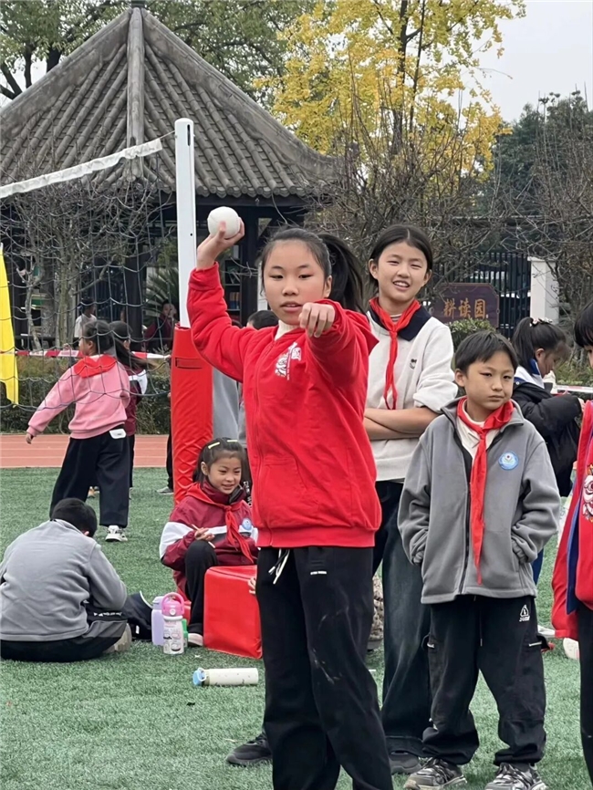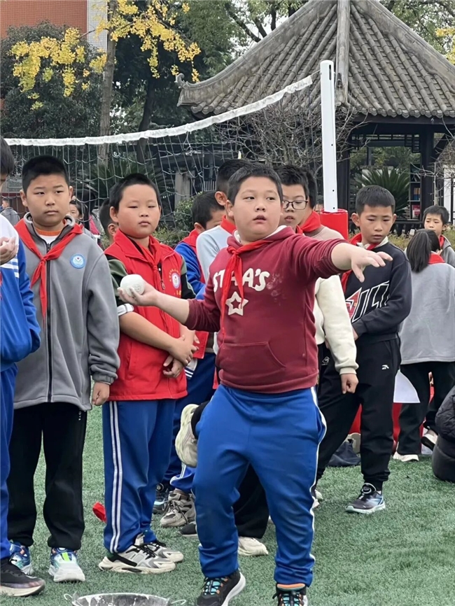 投垒球项目中,小选手们凝神聚力,侧身、挥臂、投掷,垒球带着力量在空中划出长长的弧线。他们双眼紧盯目标,用尽全身力气展现实力,每一次投掷都承载着期待与勇气。志愿者协助搬运垒球、测量距离,维持现场安全秩序。