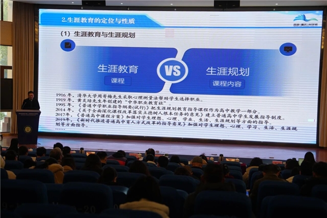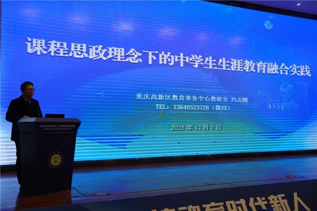 西部科学城重庆高新区教育事务中心中教部主任冯志刚作了题为《课程思政理念下的中学生生涯教育融合实践》的专题报告。他系统阐述了区域层面推进融合的策略体系,强调融合须贯穿课程设计、教学实施与评价机制全过程,并借助“项目式学习”“情境教学”等实例,展示了如何引导学生在解决真实问题中联结个人理想与国家需要,提供了一份详实的区域推进“操作手册”。