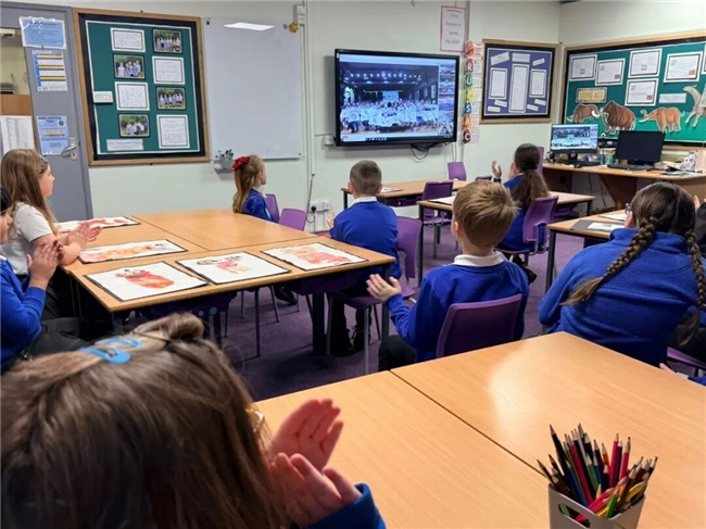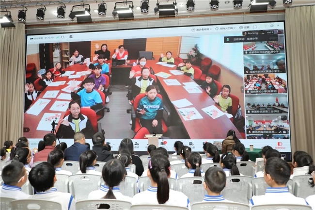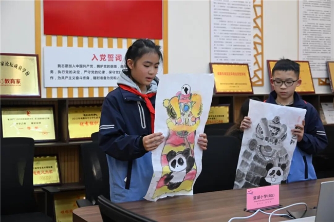 棠湖小学校长杨柳代表中国各友好学校总结:“今天我们以云端为舞台,以色彩为语言,共同见证了‘同画一幅画’带来的感动与联结。这不仅是熊猫棠棠舞动世界的时刻,更是我们跨越山海、童心交汇的美好缩影。特别值得一提的是,借助‘互联网+’的力量,我们打破了时空限制,让四川的童趣与世界的创意在屏幕间自由流动。这不仅是技术的胜利,更是心与心贴近的证明!愿我们继续以童心为笔,以友谊为纸,共绘一幅真正属于世界的、充满理解与美好的长卷!”