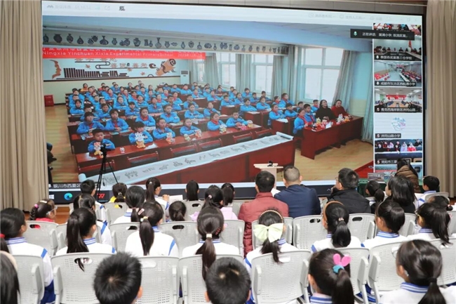 中外人文交流实验区友校青岛西海岸井冈山路小学薛振宁校长、银川市西夏实验小学孙定芬副校长、王莹副校长分别携团队从青岛和宁夏带来问候!