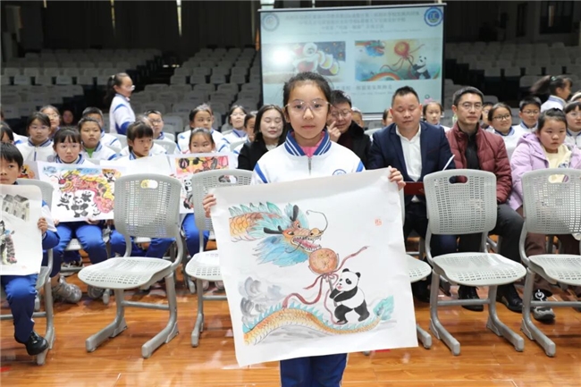 棠湖小学儿童国画社团&双语绘本社团联袂登台展示熊猫棠棠戏龙舞狮,姿态各异,从视觉与听觉呈现了国画的盛宴!