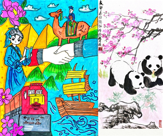 在作品展示环节,各国孩子们以童眼观文化,以童心绘传统。