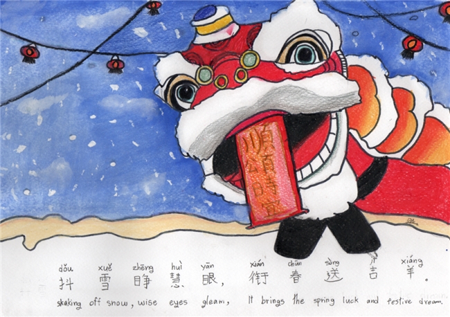 英国柳树学院的诺金汉姆小学&格里斯伯勒小学简单地相互介绍后,主持人张帅主任把镜头转向英国柳树学院的诺金汉姆小学和格里斯伯勒小学。虽然面临文化隔阂,两校的孩子们还是抓住了舞狮与舞龙的精髓,画作天马行空,跃屏而出。在本·帕金老师的带领下,诺金汉姆小学的孩子们不仅用英语朗读了绘本,而且在拼音的帮助下尝试用中文朗读,趣味盎然!
