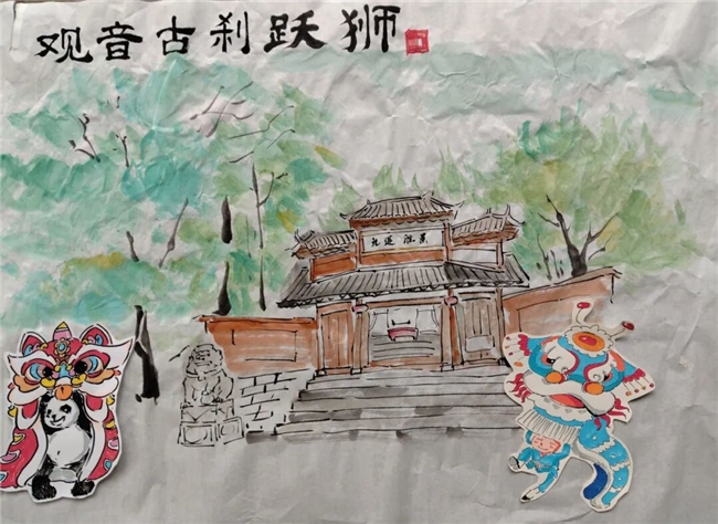 新津区黄渡小学美术社团创新别具,把舞狮龙与新津区人文结合,创造出《观音古刹跃狮》《舞狮斑竹林间》《天府农博腾锦龙》《纯阳观里跃祥狮》《花舞人间腾龙》等极具地方特色的作品,让人眼界大开!