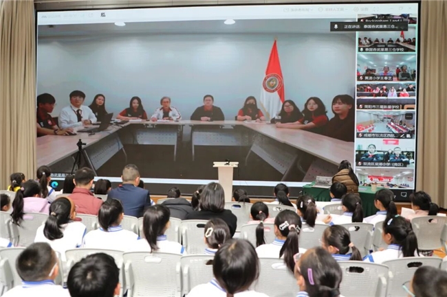 活动尾声,中英泰三国十一校师生齐声共读双语绘本《熊猫棠棠舞狮龙》。琅琅书声中,熊猫“棠棠”化身文化小使者,将三国师生的心紧密相连。童心相通,文化相融,这一刻,屏幕内外皆是一片温暖。