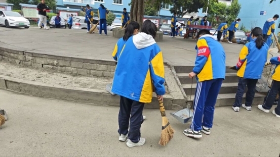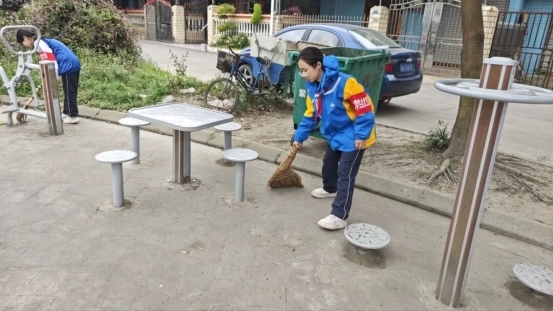 活动伊始,师生们在红石社区广场整齐列队合影留念,定格践行雷锋精神的美好瞬间。随后,大家迅速分工协作,手持扫帚、垃圾夹、垃圾袋等工具,与环卫工人并肩作战,对广场路面、绿化带、健身器材及公共座椅进行全面清扫。同学们不怕脏、不怕累,弯腰捡拾纸屑、烟头、塑料袋,认真擦拭公共设施,不放过任何卫生死角,用实际行动助力社区环境焕新。
