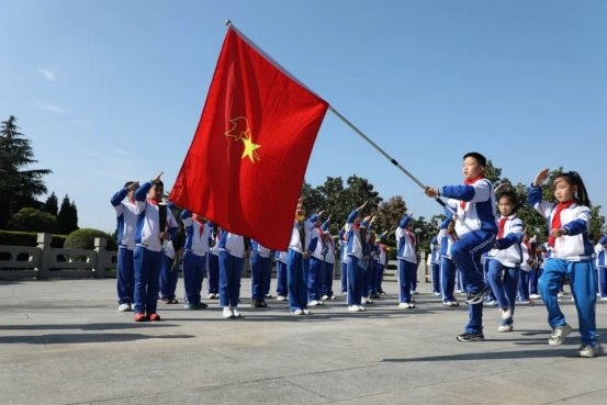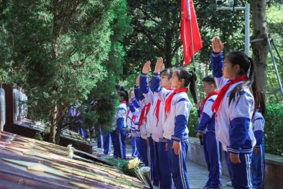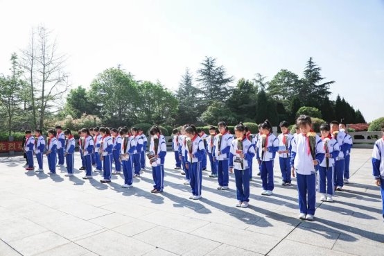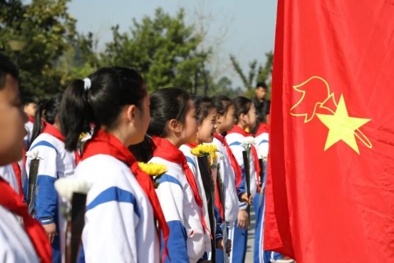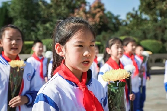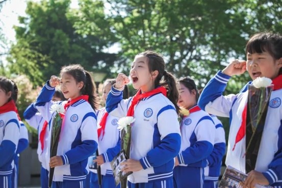 随后,在少先队员代表的带领下,全体队员高举右手庄严宣誓,誓言铿锵有力,彰显着新时代少年传承遗志、奋发图强的坚定决心。