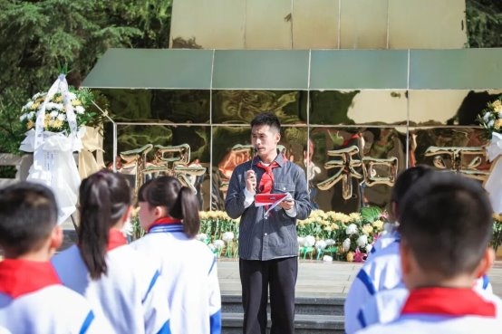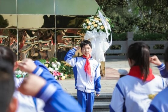 默哀毕,德育安全处副主任王翔宇老师勉励全体少先队员铭记历史、崇尚英烈,将英烈精神融入日常学习生活,树立远大理想,练就过硬本领,争做担当民族复兴大任的时代新人。