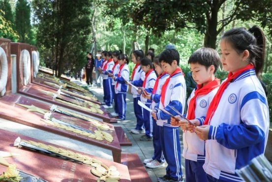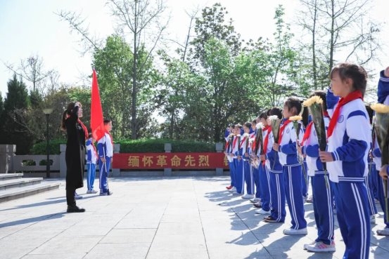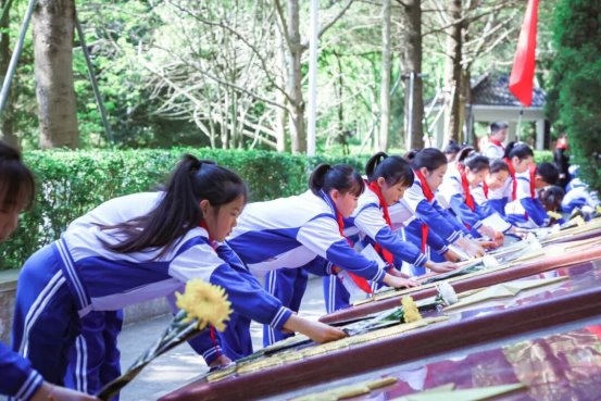 在老师的带领下,师生们有序分队瞻仰烈士纪念碑,敬献鲜花、清扫墓园,以最质朴的方式告慰先烈英灵。