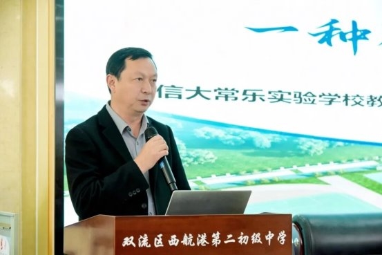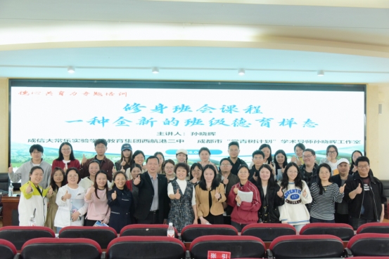 为深入落实立德树人根本任务,提升教师“五项基本功”德心共 育 力,破解班级德育实践痛点,推动成 信大常乐实验学校教育集团德育资源共享与校际协同发展,4月8日下午,双流区西航港第二中学特邀四川省特级教师、正高级教师、四川省中小学名班主任孙晓晖老师,开展以“修身班会课程,一种全新的班级德育样态”为主题的专题培训。集团各成员校教师代表、西航港二中全体班主任及青年教师齐聚一堂,共学德育良方、共探育人路径。